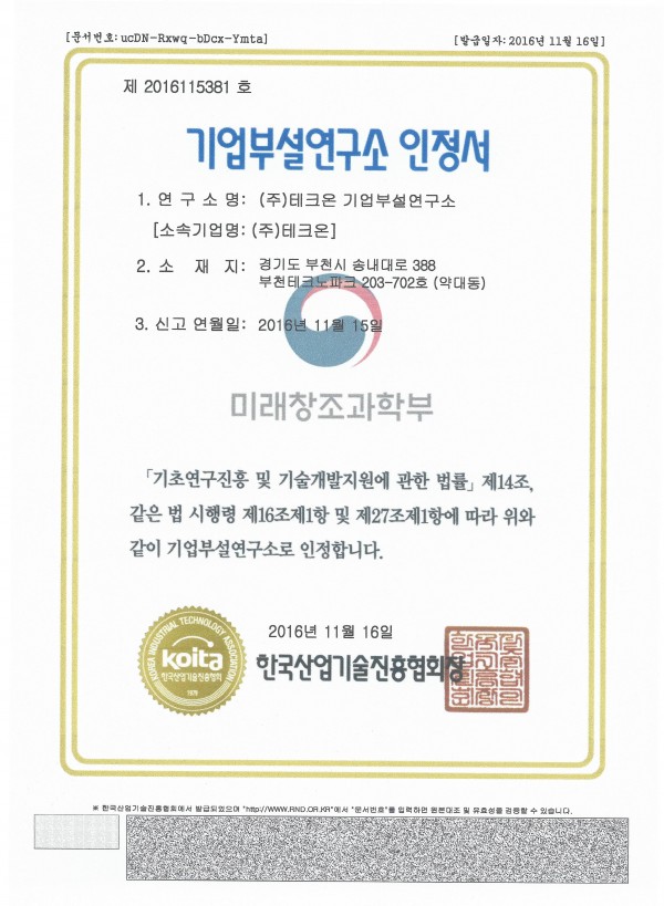 기업부설연구소 인정서